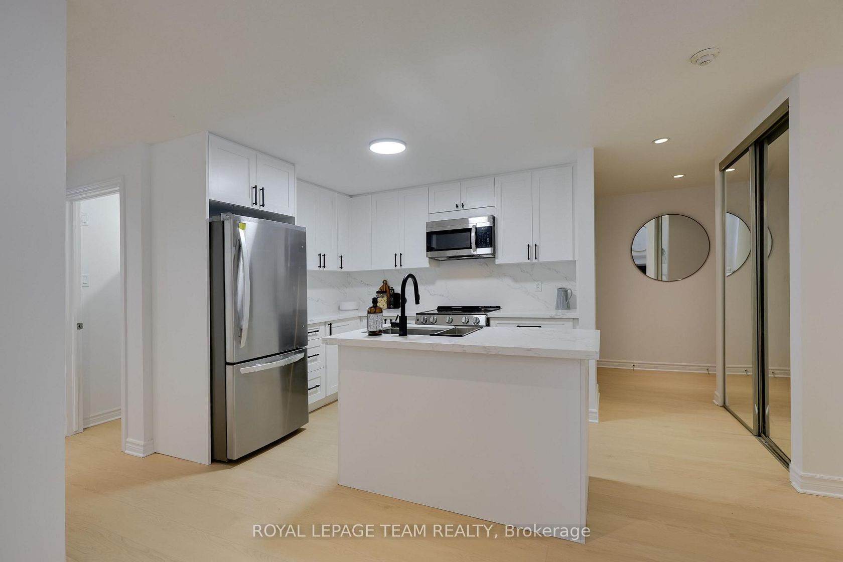 Discover this beautifully renovated condo located in the heart of Centrepointe, offering modern living with exceptional value. This thoughtfully designed unit features 2 Bedrooms plus a versatile OFFICE, 1.5 Bathrooms, and assigned parking, ideal for first-time buyers, professionals, downsizers, or investors. The seller has completely renovated the property from top to bottom, investing extensively to deliver a truly turnkey home with quality finishes throughout. Highlights include a brand new kitchen with contemporary cabinetry and brand new appliances, new luxury vinyl flooring throughout, and fresh paint for a clean, modern aesthetic. Both bathrooms have been fully updated with brand new vanities, toilets, mirrors, and ceiling lights, offering a polished and comfortable living experience. Bright and functional living and dining spaces are perfect for everyday living and entertaining. Step outside to your private balcony with a designated BBQ space, ideal for summer grilling and outdoor enjoyment. Well-managed building with low condo fees of $271.72/month. Designated parking at #161. Conveniently located close to parks, public transit, shopping, library, and community amenities, this home combines modern upgrades, low maintenance living, and a desirable central location. A rare opportunity to own a fully renovated condo in a sought-after neighbourhood