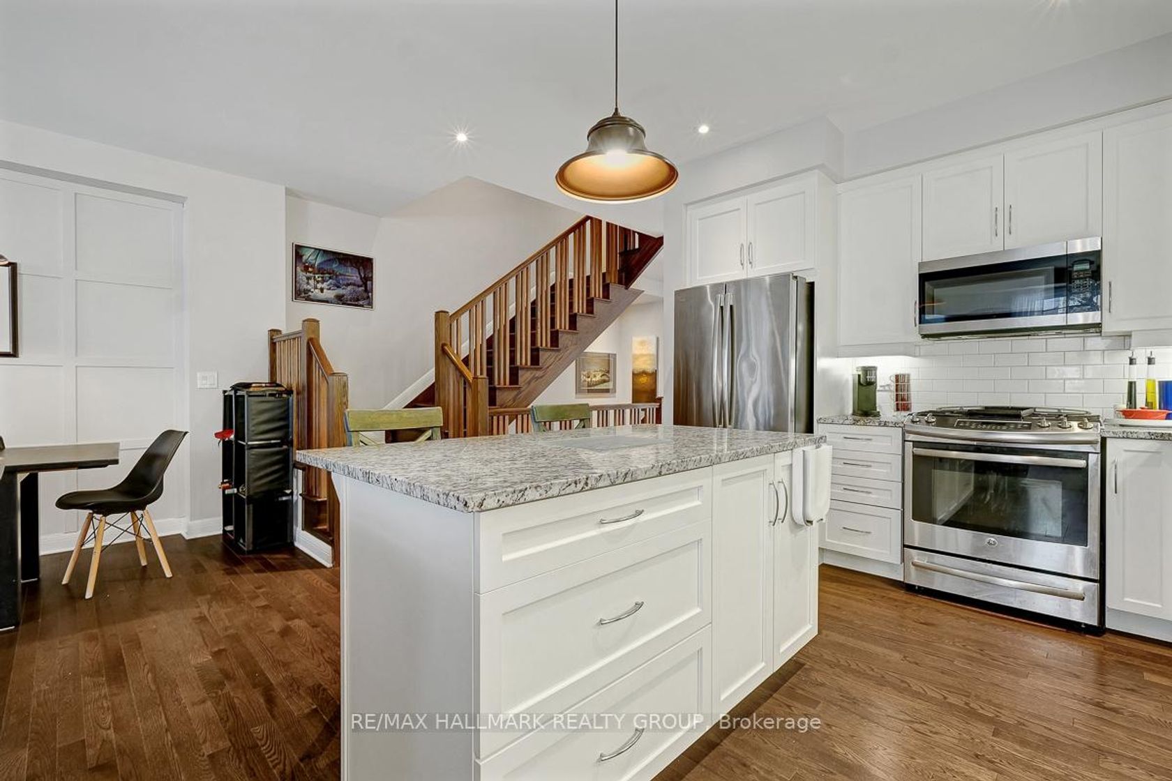Welcome to 551 Kilspindie Ridge, a stylish open concept executive townhome in "The Orchard "of Stonebridge, by Uniform, perfect for today's busy lifestyle. Step inside to a spacious front entry with a convenient 2-piece powder room. The open concept main floor features rich hardwood flooring throughout and is designed for both everyday living and entertaining. The kitchen offers granite countertops, stainless steel appliances, a natural gas stove, microwave hood fan, and a breakfast bar ideal for casual meals. The inviting living room is filled with natural light from large windows and anchored by a cozy gas fireplace. The dining area includes patio doors leading to a fully fenced backyard and showcases a beautiful custom wall treatment that adds a designer touch. Upstairs, the large primary bedroom is a true retreat with a custom wall treatment, walk-in closet, and a 4-piece ensuite. Two additional well-sized bedrooms, a full family bath, and second-floor laundry complete this level. No more hauling laundry up and down stairs! The fully finished lower level extends your living space with a comfortable family room, another custom wall treatment, a 3-piece bath, and a utility room with plenty of storage. Ideally located withing walking distance from the prestigious Stonebrige Golf Course and Country Club, close to schools, parks, recreation centers, shopping, restaurants, and some fantastic local coffee shops. A wonderful place to call home in a sought after Stonebridge community. All offers to include Schedule B.