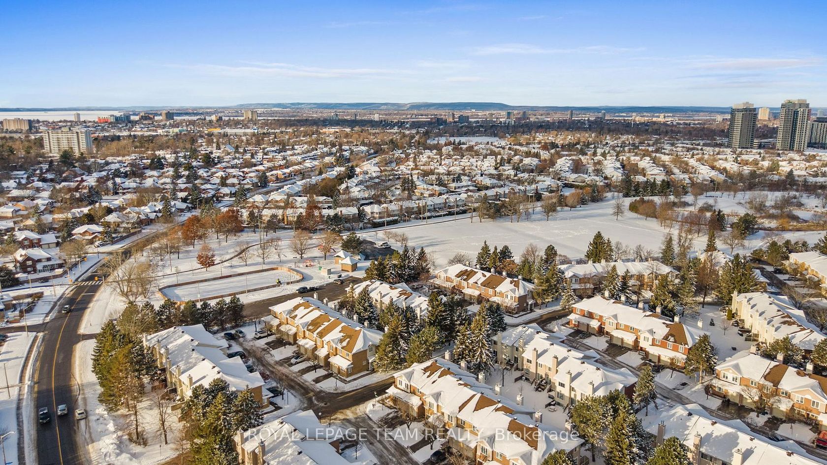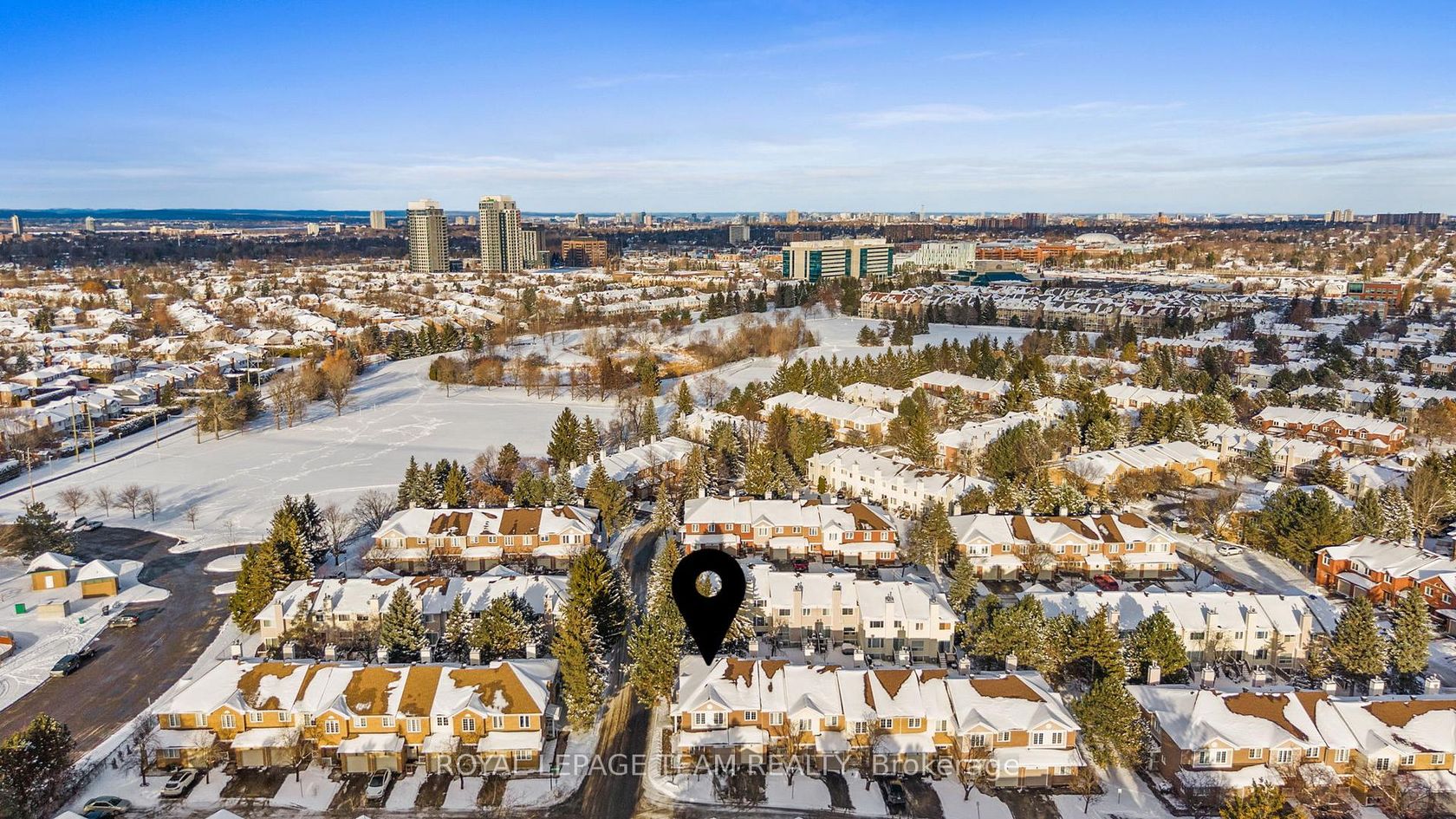 Maintenance Free Living! Condo fees include snow removal and lawn care! Welcome to this beautifully updated end-unit condo townhouse in the highly sought-after Centrepointe neighbourhood. Surrounded by mature trees, this bright and private home offers a peaceful setting with added natural light-an ideal retreat at the end of the day. The spacious layout features four bedrooms, including three on the upper level and a full bedroom on the main floor, perfect for guests, a home office, or multigenerational living. The oversized primary bedroom offers a comfortable retreat with plenty of space to unwind. Hardwood flooring flows throughout, creating warmth and continuity, while the updated kitchen offers a functional layout with a convenient breakfast bar-ideal for casual meals, homework, or morning coffee. Renovated upstairs bathrooms add modern comfort and style, enhancing the home's turnkey appeal. Enjoy cozy evenings by the electric fireplace in the living room or the wood-burning fireplace in the basement, offering warmth and versatility year-round. Thoughtfully updated and beautifully maintained, this calm and welcoming home allows you to simply unpack and enjoy. Ideally located just steps from Centrepointe Park, the library, transit, and close to shopping, schools, and recreation. Be sure to watch the video attached to this listing!
