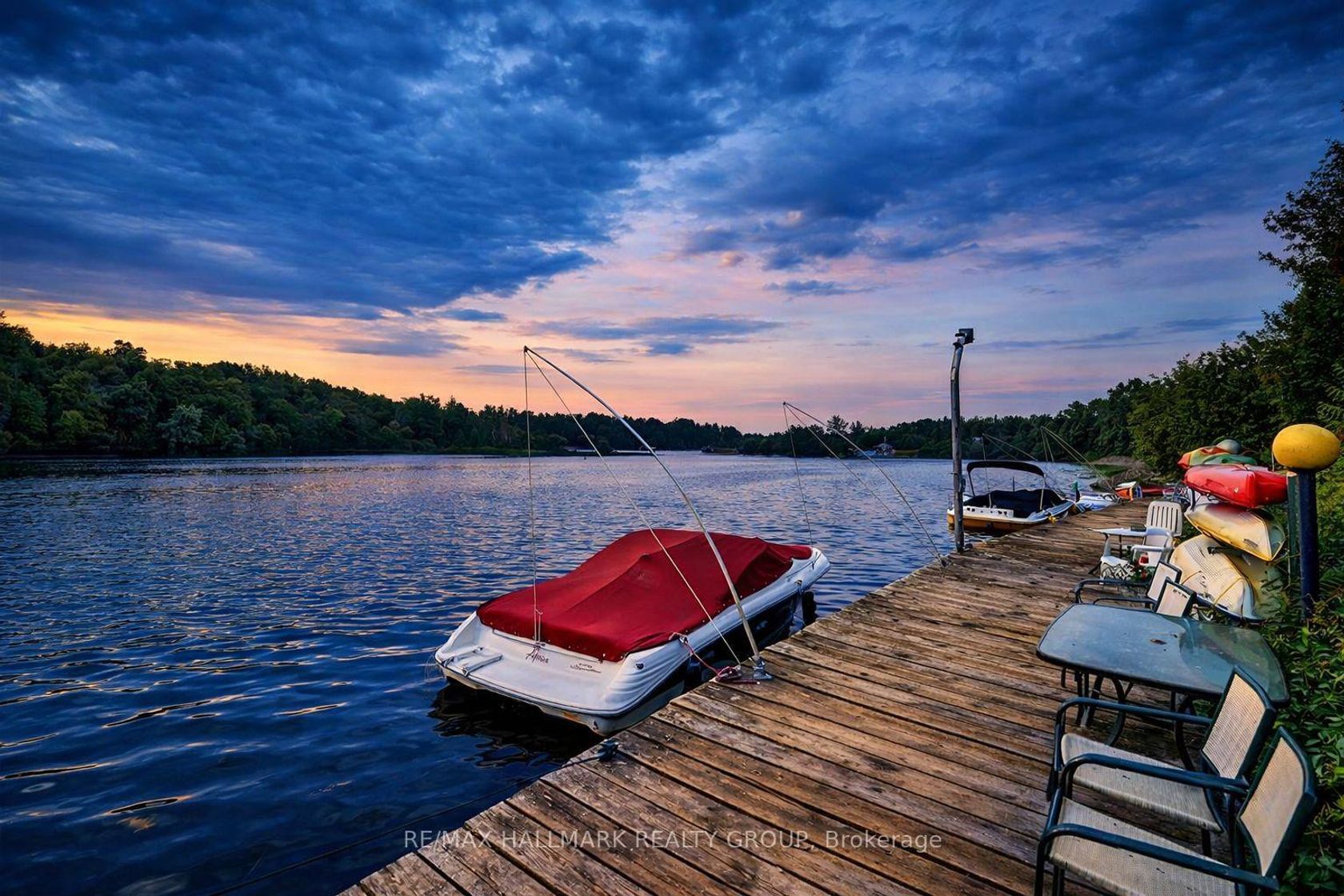 Welcome to Waterford on the Rideau, a unique riverside community nestled along the banks of the Rideau River. Located just 15 minutes from downtown Ottawa, this exceptional setting offers the perfect balance of nature, privacy, and convenience. This beautifully maintained detached bungalow with a double car garage impresses from the moment you step inside. Large windows flood the home with natural light, highlighting the generous room sizes, abundant storage, and the inviting open concept design. The main level features 2 bedrooms and 2 full bathrooms, a bright kitchen, dining area, and a welcoming living room centered around a gas fireplace. The kitchen offers a sunny breakfast nook overlooking the charming front porch, the perfect place to start your day. Solidly built and all brick, this bungalow provides timeless quality along with the benefit of a walkout lower level. Step out onto the large balcony to take in beautiful sunsets, complete with a remote controlled awning that deploys in minutes, allowing you to enjoy the outdoors in comfort. From here you can also catch a lovely glimpse of the river. River access is just across the street. The private yard is framed by mature hedges and landscaped with perennial gardens. Patio stones and a hot tub installed in 2020 create a peaceful outdoor retreat. The fully finished walkout lower level delivers the space everyone wants. You will find a spacious family room featuring another gas fireplace, a generous bedroom with a walk in closet, a full 3 piece bathroom, and abundant space for storage, a workshop, and wine room. Residents enjoy access to a private dock where swimming, kayaking, and boating can become part of everyday life, or simply relax by the water and take in the birds and wildlife. Set within a well established neighborhood close to endless amenities, this is a rare opportunity to enjoy comfort, community, and nature all in one remarkable location. Book your showing today.