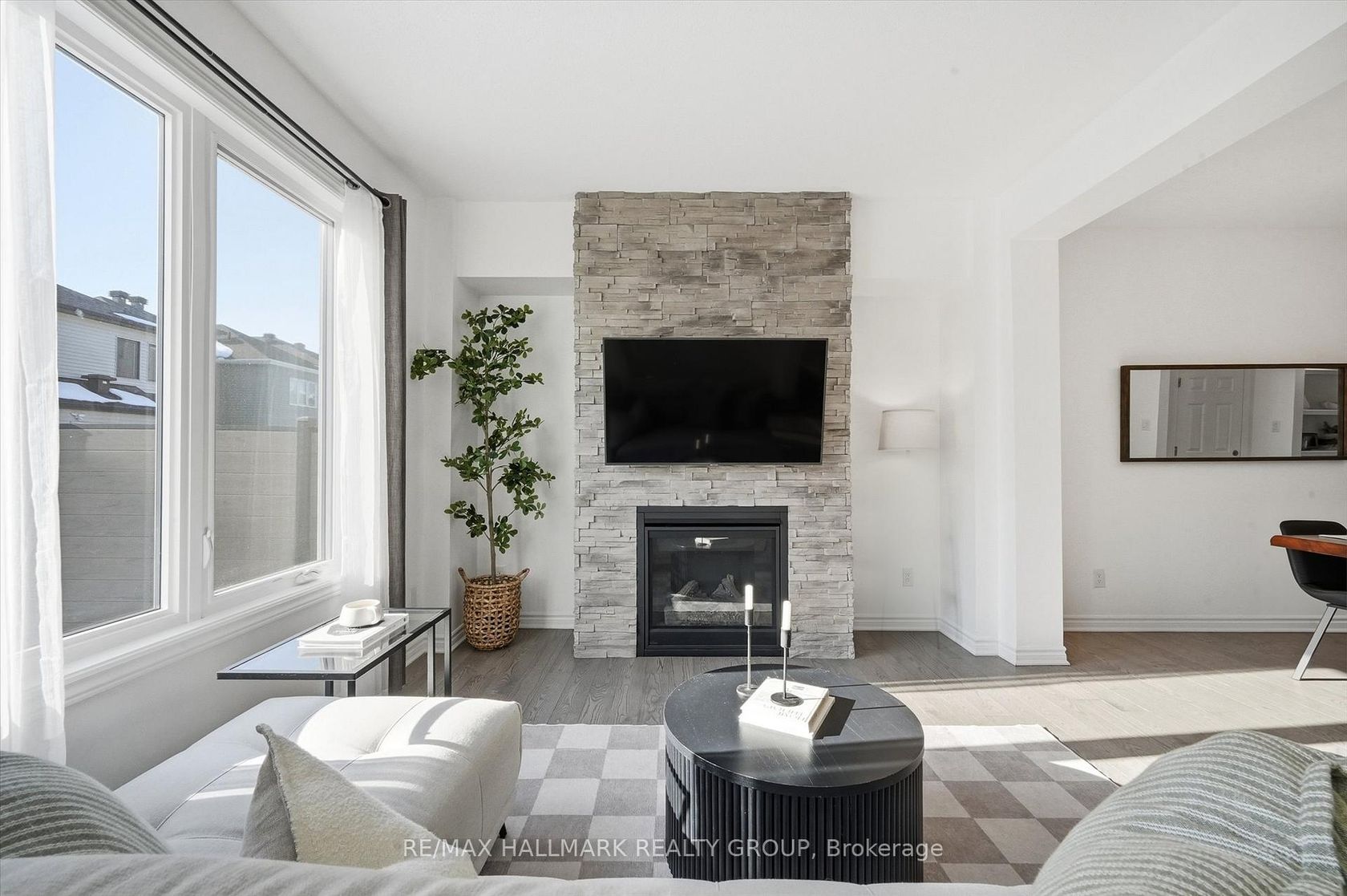 *OPEN HOUSE SUNDAY March 8th 2pm-4pm* Welcome to this beautifully maintained 3-bedroom, 3-bathroom townhome located in the highly sought-after community of Half Moon Bay. This Mattamy Majestic model, built in 2019, showcases quality finishes throughout and true pride of ownership.The bright main floor features an open-concept layout designed for both everyday living and entertaining. The stylish kitchen offers extended cabinetry, quartz countertops, a large island with seating, and a designated dining area overlooking the spacious living room, complete with a cozy Napoleon gas fireplace with stone surround. Rich hardwood flooring runs throughout the main level, and large windows fill the space with natural light. Upstairs, the generous primary bedroom retreat includes a large walk-in closet and a luxurious ensuite featuring a glass shower and standalone soaker tub. Two additional well-sized bedrooms, a full main bathroom, and a conveniently located second-floor laundry room provide comfort and functionality for the whole family. The unfinished basement offers endless potential to customize to your needs and includes a three-piece bathroom rough-in, ready for future development. Step outside to enjoy the fully fenced and private backyard - perfect for relaxing, entertaining, or letting children and pets play safely. This home is nestled on a quiet street in a vibrant, family-friendly neighbourhood known for its parks, scenic walking trails, and excellent schools. Residents of Half Moon Bay enjoy convenient access to shopping, transit, recreation centres, and all the amenities of Barrhaven, making it an ideal place to call home. A perfect blend of modern comfort, thoughtful design, and an exceptional location - don't miss this opportunity.