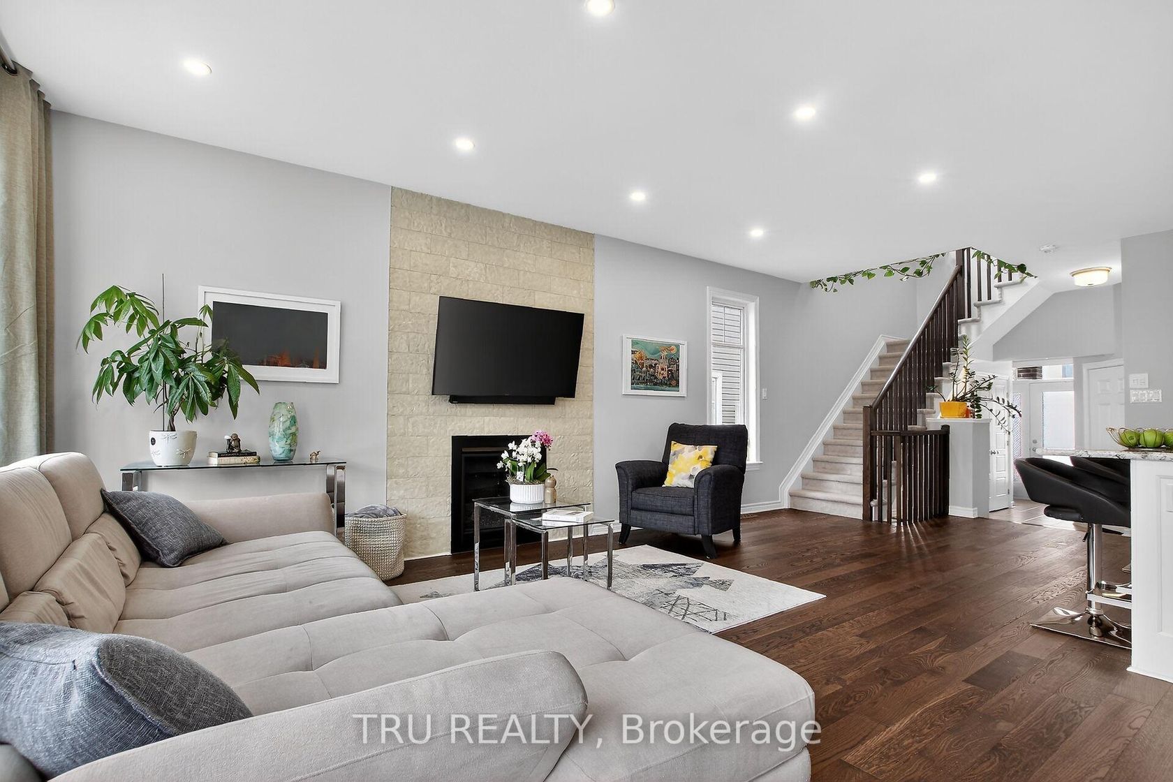Beautifully maintained end-unit Townhouse in sought-after Half Moon Bay, featuring over $17,000 in upgrades and offering a perfect blend of comfort, style, and functionality. bright and welcoming foyer with high ceilings and abundant natural light that immediately sets the tone for the home. Main floor opens into a spacious open-concept kitchen, living, and dining area - ideal for everyday living and effortless entertaining.The upgraded kitchen is a standout feature, offering elegant granite countertops, extended cabinetry with soft-close hinges, spacious pan drawers, a built-in waste pullout system, a deeper fridge cabinet with water line rough-in, a deep sink, and additional tile in the hood fan area. The large island provides extra storage and includes a convenient built-in vacuum sweep pan, perfect for quick cleanups. The space flows seamlessly into the warm and inviting living area with a cozy fireplace and large windows that flood the room with natural light.Hardwood flooring extends across the main level and into the kitchen, creating a warm and cohesive feel throughout the space. Additional thoughtful features include recessed TV wiring above the fireplace, extra lighting in the living area, and central vacuum rough-ins.Upstairs, you'll find three bright and well-sized bedrooms, including a spacious primary retreat with a walk-in closet and a well-appointed ensuite featuring granite countertops, double sinks, upgraded undermount basins, and additional storage. Two additional bedrooms, a full main bathroom with a granite countertop, and convenient second-floor laundry complete the upper level.finished basement offers versatile additional living space ideal for a rec room, home office, gym, or movie nights. Step outside to enjoy a fully fenced backyard with a spacious patio and gardens, creating a private outdoor setting perfect for relaxing or entertaining. Ideally located close to parks, trails, schools, recreation, shopping, dining, and transit.