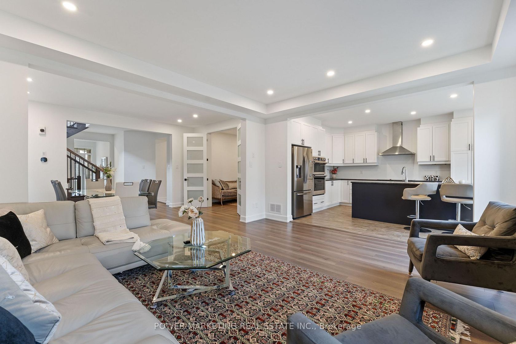 Experience modern living in the heart of Half Moon Bay at 159 Celestial Grove, a stunning 4+1 bedroom, 3.5 bath home offering style, space, and convenience. The main level features an open-concept living and dining room with 9ft smooth ceilings on both floors, laminate flooring throughout, and an upgraded gas fireplace with a designer backsplash. The upgraded two-toned kitchen impresses with stainless steel appliances, a cooktop with built-in oven, and extended cabinetry. This level also includes a main-floor den, custom decorative ceiling, abundant pot lights, and a hardwood staircase (to both the second level and basement) finished with elegant iron spindles. The second floor offers four spacious bedrooms, upgraded extra-tall doors with black hinges/handles, and laminate flooring throughout. The primary suite includes an oversized walk-in closet and a luxurious 5-piece ensuite with a glass shower. A large second-floor laundry room adds everyday convenience. The fully finished basement provides incredible flexibility with a full bath, kitchenette, living area, and a fifth bedroom-perfect for an in-law suite. The backyard is fully fenced and private, and the home is footsteps from the local pond, schools, transit, parks, and the new Food Basics plaza, making this the ideal family-friendly location.