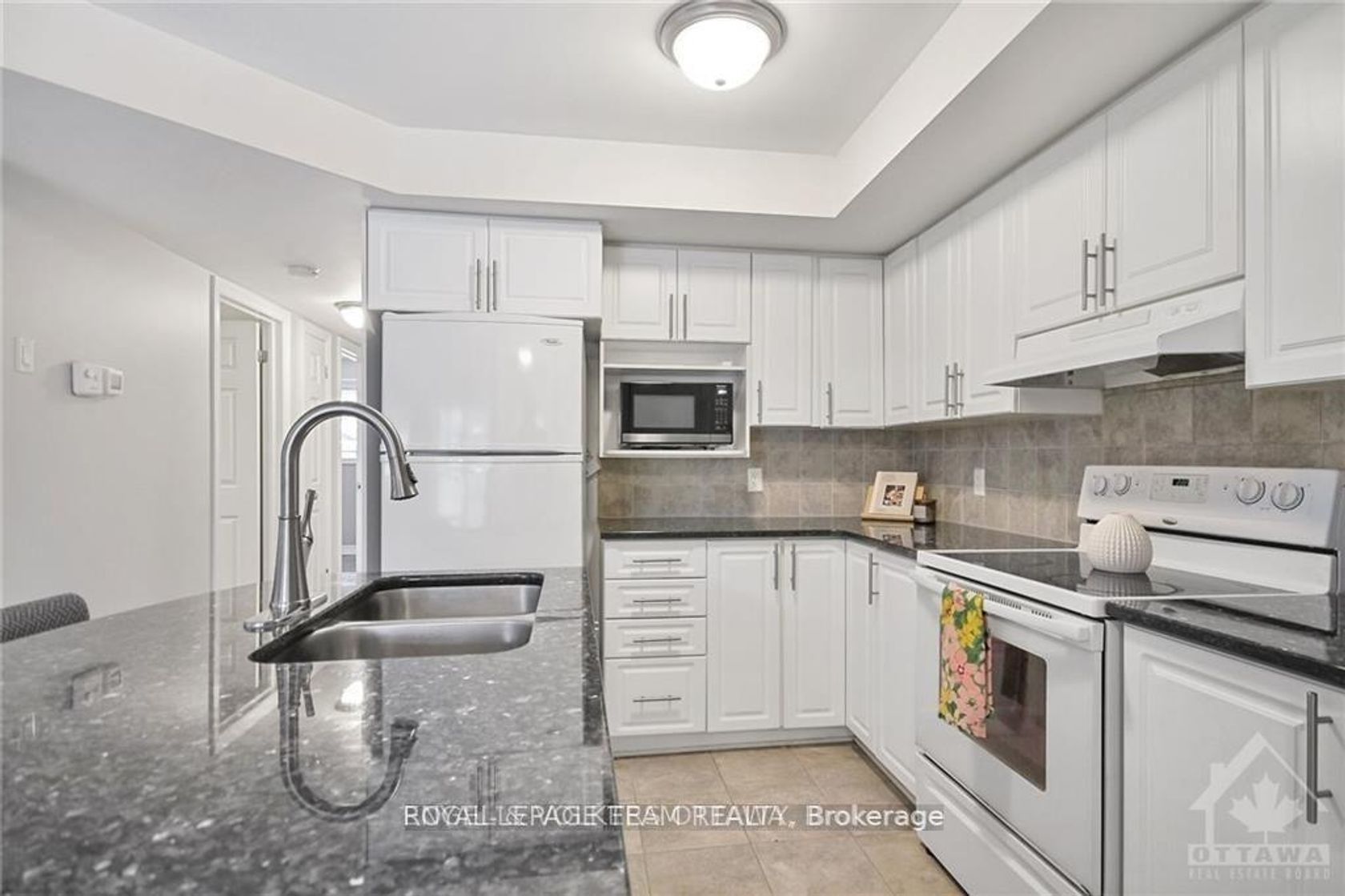 Welcome to this bright and beautifully maintained, Lower-Level Corner Unit 2-bedrooms + den, 2-bathrooms condo in the highly sought-after Chapman Mills community. Offering a perfect blend of style, comfort, and convenience, this move-in-ready unit is ideal for modern living.The open-concept layout features a contemporary white kitchen complemented by elegant black granite countertops, providing both functionality and visual appeal. Tile and laminate flooring throughout create a clean, low-maintenance living environment. The spacious living room offers direct walk-out access to a green space, perfect for relaxing or enjoying outdoor moments.A versatile den adds valuable flexibility-ideal as a home office, reading nook, or playroom to suit your lifestyle needs. The entire unit has been freshly painted, presenting a bright and refreshed interior.This property also includes one conveniently located surface parking space (#128). Situated in a vibrant, family-friendly neighbourhood, you are just steps away from parks, schools, shopping, public transit, and all essential amenities.An excellent opportunity for first-time buyers, downsizers, or investors-this condo offers exceptional value in a prime location. Immediate possession available.