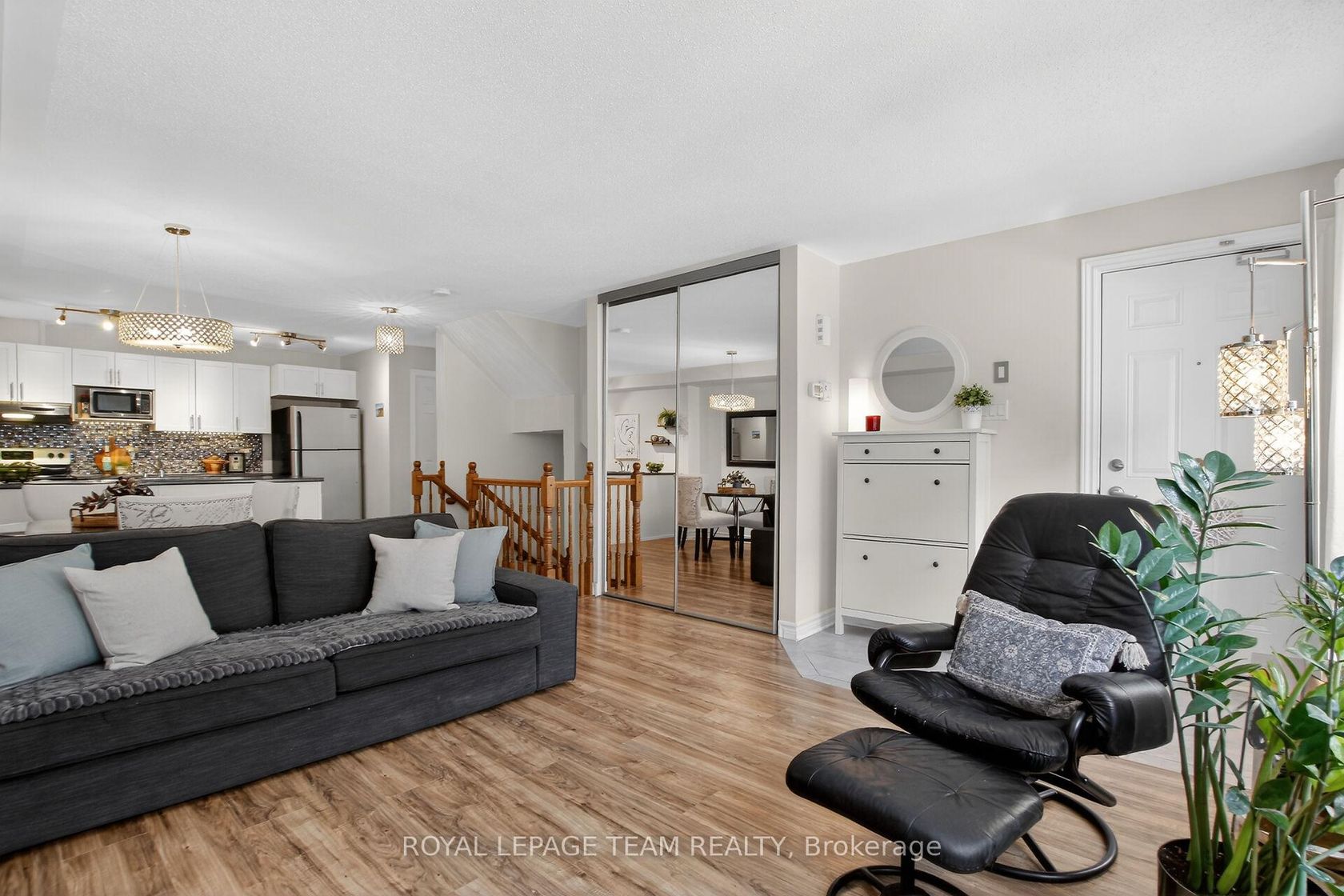 Step into effortless urban living with this stylish and impeccably maintained 2-bedroom, 2-bath terrace home in the heart of sought-after Barrhaven, featuring a rarely offered underground parking space for added comfort and year-round convenience. This bright, east-facing home is filled with natural light, highlighted by expansive living room windows that elevate the open-concept main level. A welcoming tiled foyer leads into sleek, easy-care laminate flooring that flows throughout both levels. The contemporary kitchen is designed to impress, offering crisp white cabinetry, a chic mosaic backsplash, stainless steel appliances, ample workspace, and a separate pantry-perfect for both everyday living and entertaining. A convenient 2-piece powder room completes the main floor. Downstairs, you'll find two generously sized bedrooms with large daylight windows, a full 4-piece bath, and exceptional storage including a utility room, laundry area, and bonus space under the stairs. The primary bedroom offers a spacious walk-in closet. Enjoy your own private, sun-filled terrace overlooking a quiet courtyard-an ideal retreat for morning coffee or evening relaxation. Additional upgrades include custom blinds and modern light fixtures. Located just steps from shops, restaurants, grocery stores, a movie theatre, parks, schools, and transit, this home offers unbeatable walkability and lifestyle convenience. The Juliet 2 model is part of a LEED-certified building, ensuring energy efficiency, low utility costs, and economical forced-air natural gas heating, all paired with low condo fees. A true turnkey opportunity combining style, function, and a premium underground parking feature - no snow or ice to scrape before you depart for the day, and protects your car from sun and exposure to the elements year-round! The parking garage is heated in winter and cooled in summer. Lovingly cared for by its original owner. Don't miss this unit!