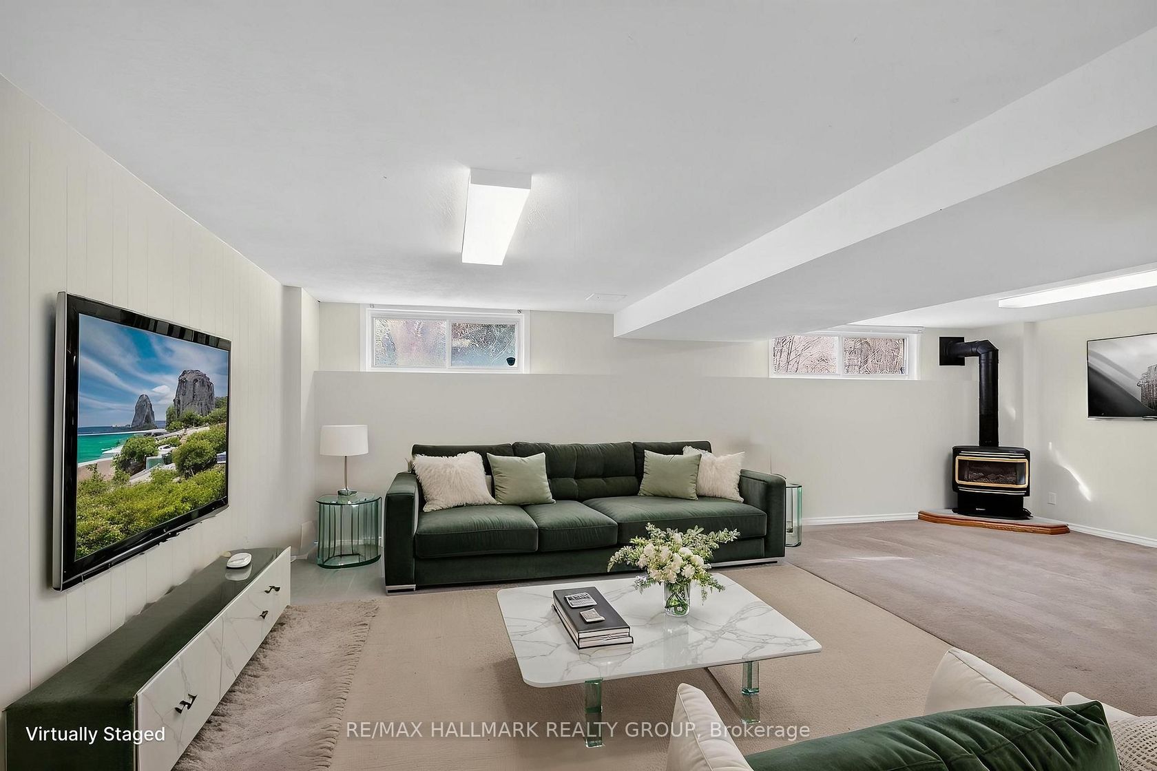 Charming 3+1 Bungalow in Old Barrhaven. Prime Location and Tranquil Setting This delightful 3+1 bedroom bungalow is nestled in the highly sought-after neighbourhood of old Barrhaven, set on a peaceful and quiet court. The home's location offers the perfect blend of privacy and convenience, making it an ideal choice for families and those seeking a serene environment. Upon entering, you are greeted by a sunken living room and a dining area, both of which feature beautiful hardwood flooring that extends into the hallway. The bedrooms and the spacious recreation room are fitted with newer Berber carpeting, providing comfort and warmth throughout the year. Cozy gas fireplaces are situated in both the living and recreation rooms, enhancing the inviting atmosphere of the home. The kitchen is designed with functionality in mind, offering ample cabinet and counter space, as well as a practical island for meal preparation and casual dining. From the kitchen, there is direct access to the backyard, making it easy to enjoy outdoor living and entertaining.The primary bedroom is generously sized and includes a cheater ensuite for added convenience. Two additional well-sized bedrooms complete the main level, ensuring plenty of space for family or guests. The finished lower level features a fourth bedroom, a full bathroom, and a massive Notable upgrades to the home include a high-efficiency furnace installed in 2021, an insulated garage door added in 2006, and updated front and back doors completed in 2008. The outdoor living space is equally impressive, with a large deck that overlooks a beautifully maintained inground heated pool (installed in 2006). The expansive, landscaped pie-shaped lot provides both privacy and a tranquil setting, highlighted by well-established perennial gardens.