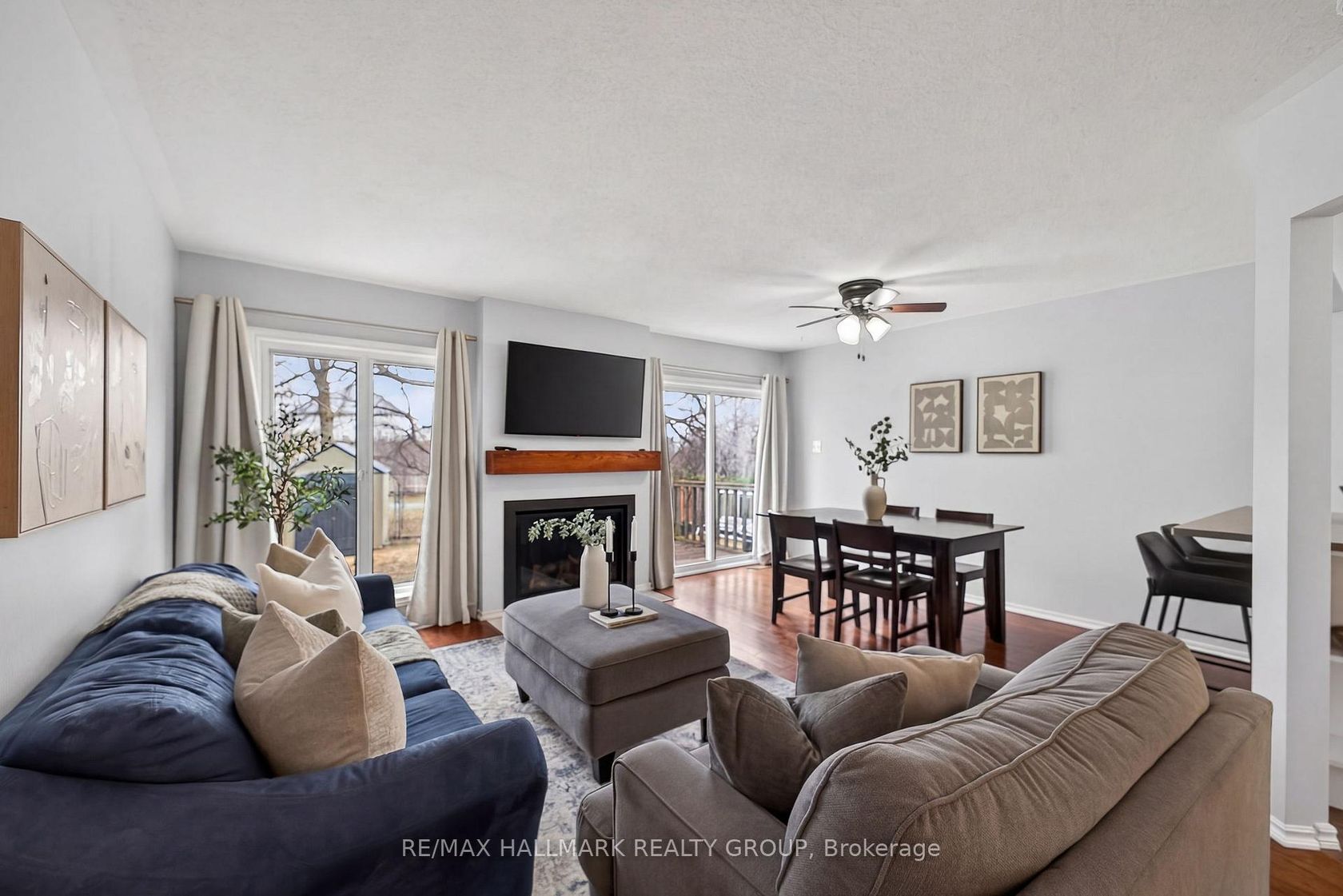 This 3-bedroom + bonus room, 2.5-bath townhouse has been consistently upgraded by owners who clearly took care of it. The main floor features a bright living and dining area connected to the kitchen, which was renovated in 2018 and offers ample cabinetry, stainless steel appliances, and a breakfast bar with extra storage. A brand-new fireplace (2025) anchors the living space, and a walk-out leads to a fully fenced backyard with a newer deck and fixed fence (2023), backing directly onto a walking trail with no rear neighbours - a great setup for dog owners and anyone who wants green space steps from the back door.Updated lighting, hardware, and a refreshed powder room (2021) complete the main floor. Upstairs, the primary bedroom includes a renovated ensuite (2021), a spacious walk-in closet, and a bonus sitting area that works well as an office nook, reading corner, or dressing area. Two additional bedrooms share an updated full bath with soaker tub/shower combo (2024).The finished basement offers a large rec room and laundry. A new furnace (2025), humidifier (2019), garage door (2023), newer windows, refreshed front deck (2024), and backyard shed (2020) round out a long list of updates. Oversized driveway, easy access to schools, parks, shopping, restaurants, and the 416 and Strandherd corridors.